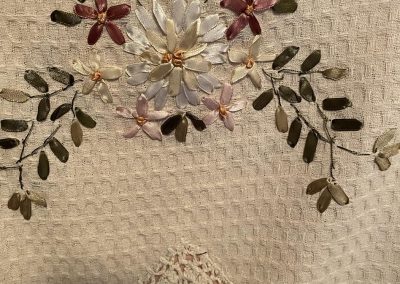 ID LT17 Pink and cream hand made dress ribbon embroidered linen panel size L $150